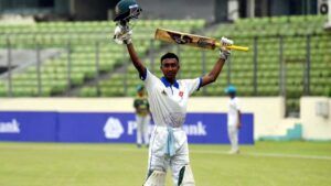 চরম বিপর্যয়ে মধ্যে ১৪৮ রানের ইনিংস খেলে দলকে সে পৌঁছে দেয় ২৮৬ রানে। পরে ৯৯ রানে গুটিয়ে যায় কেজি ইউনিয়ন।
