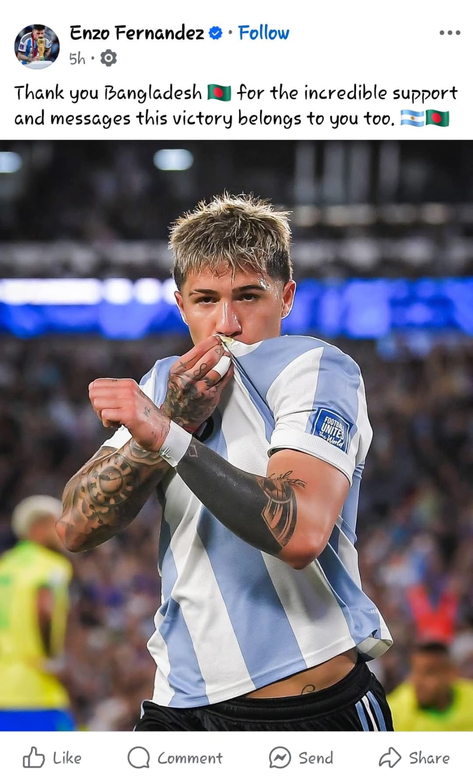 বাংলাদেশকে মনে রাখলেন বিশ্ব চ্যাম্পিয়ন দলের তারকা এনজো ফার্নান্দেজ