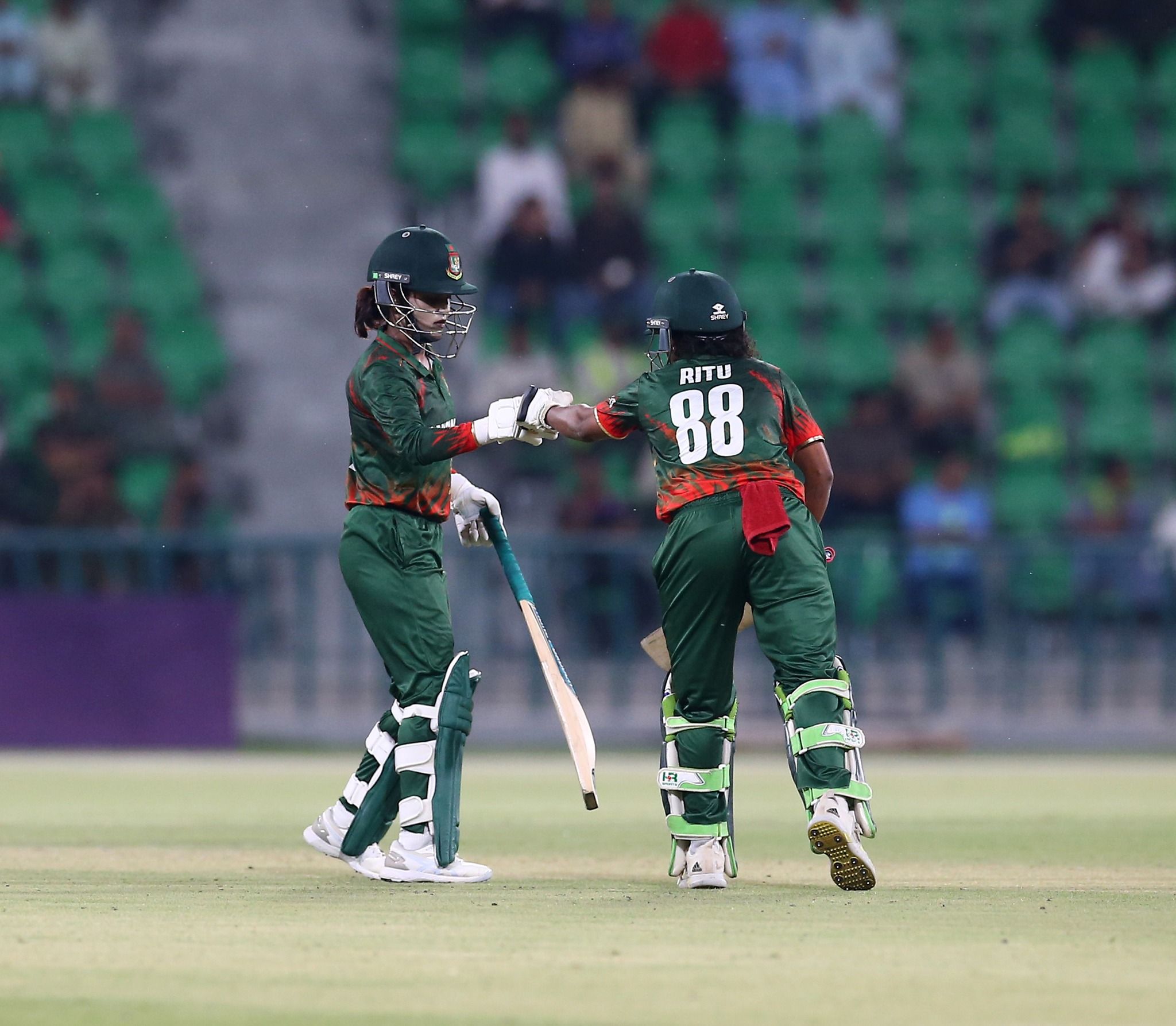 জ্যোতির বিদায়ের পর দলের হাল ধরেন রিতু। তবে তাকে এক প্রান্তে রেখে আরেক প্রান্তে ফাহিমা খাতুন, জান্নাতুল ফেরদৌসরা উইকেটে থিতু হয়েও বড় ইনিংস খেলতে পারেননি।