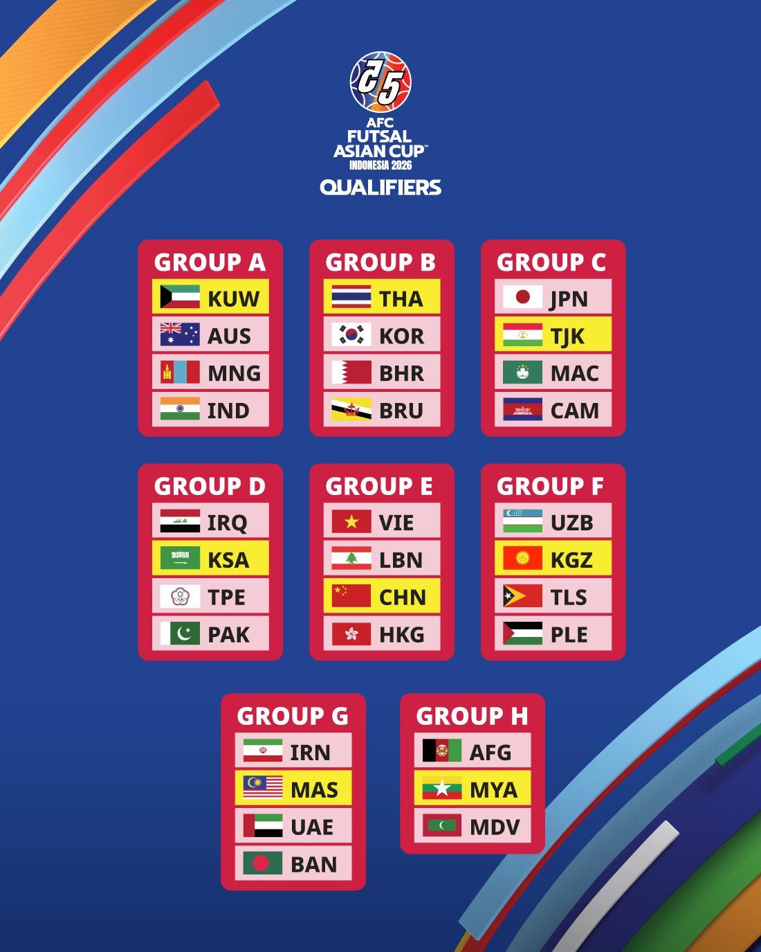 এএফসির সদর দপ্তর মালয়েশিয়ার কুয়ালালামপুরে আজ (বৃহস্পতিবার) দুপুরে এশিয়ান কাপ ফুটসাল বাছাইয়ের ড্র অনুষ্ঠিত হয়েছে। যেখানে বাংলাদেশ পড়েছে ‘জি’ গ্রুপে।