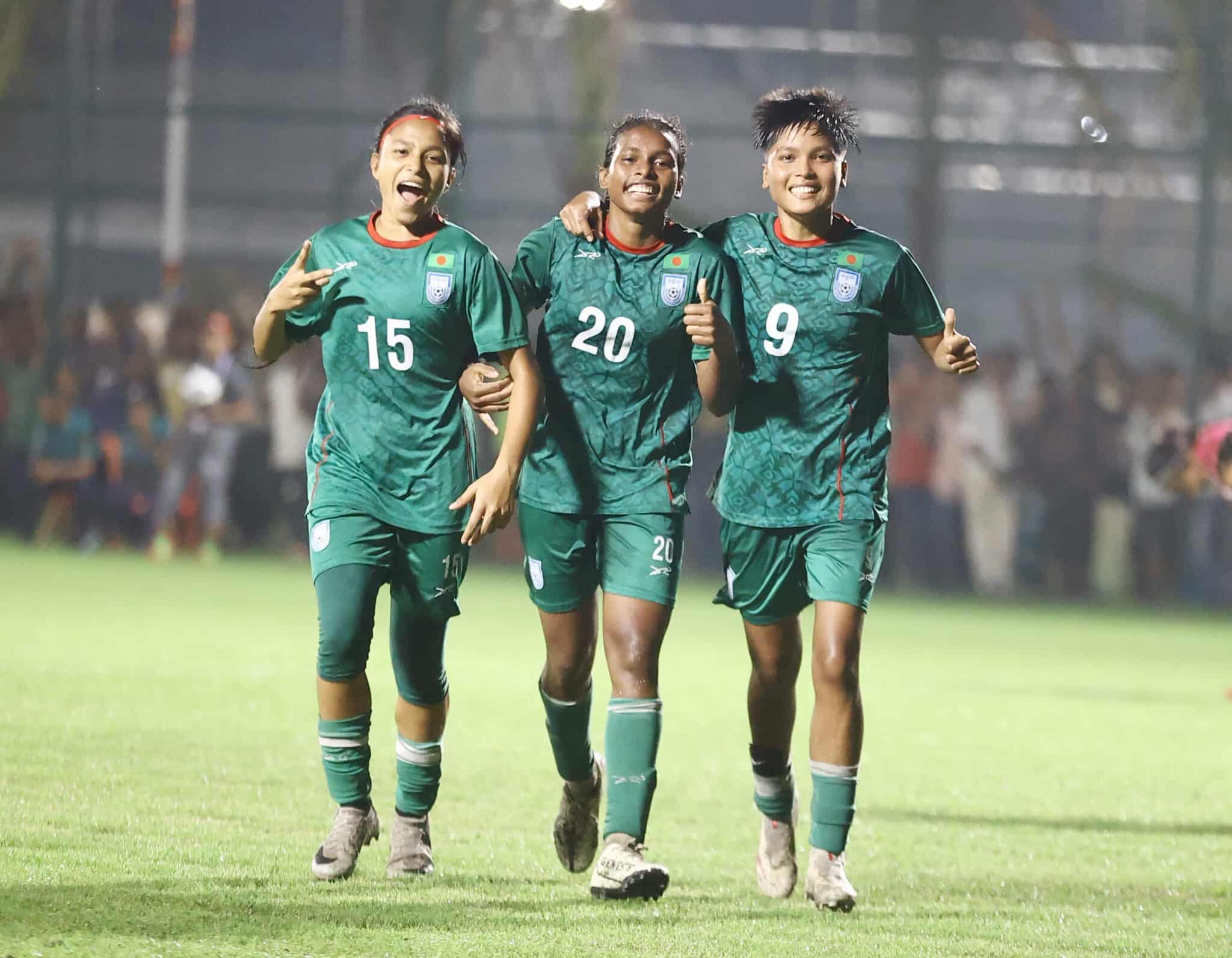 গত শুক্রবার শ্রীলঙ্কার বিপক্ষে প্রথম ম্যাচে জয় ৯-১ গোলে। এরপর দ্বিতীয় ম্যাচে নেপালকে ৩-২ গোলে হারায় বাংলাদেশের মেয়েরা।