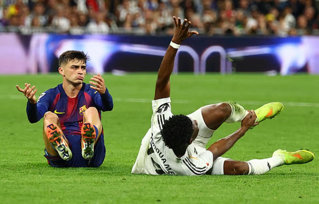 শেষ বাঁশি বাজার আগমুহূর্তে রিয়ালের অরেলিয়েঁ চুয়ামেনিকে ফাউল করে লাল কার্ডও দেখেছেন বার্সার পেদ্রি।